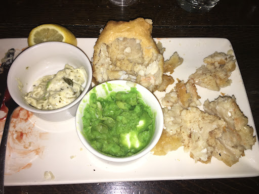 Unfortunately we would advise and recommend anyone staying at the holiday inn express or anywhere else to avoid this establishment. We even found out staff at the hotel after we had visited advise people against going due to visitors poor reviews. We learnt too late. The lovely staff at the hotel gave us free drinks when we told them about it despite it not being their fault or having any affiliation with the place. We were greeted I'm guessing by jaqui who was pleasant. All beers and ales on tap were off due to a gas error. The menus on the bar were wet and sticky. We went to find a table and entered 1 area which looked no different to the others and no reason to suggest we couldn't sit there. The blonde waitress turned towards us but didn't look at us and in her words said "not in here guys, anywhere out there but not in here". No apology and no explanation just poor customer service. Then we order drinks and despite a decent bootled beer and cider menu and 6 gins they only had sol, kopparberg and 1 gin. Everything else was out of stock apparently. Then the steak pie was sold out. One of us had the chicken pie which was ok apart from floppy carrots. Then 2 of us had fish and chips. Chips were fine, peas you can see are synthetically green, fish was wet showing its frozen, batter was thick, undercooked and inedible and actually floury in texture. No one came to check how our meal was, they probably knew what we would have said. Lastly as we walked out despite 2 of them being at the bar talking there was no good bye or thanks for coming, nothing. That's just standard customer service again. All in all very disappointed and dissatisfied and to summarise we would advise people at the hotel eat...