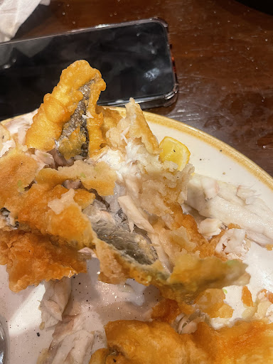 . My mom and sister are vegetarian and both ordered falafel burgers but were told it was unavailable. There was only two more choices for vegetarian which both my mom and sister didn’t really like (halloumi and veg wellington) there was nothing else on the menu they could have had which is shame! My children and my other sister loved theirs. I however, had the “posh fish and chips” which was actually really nice but there was literally no fish inside? Just scales. I’ve posted a picture below. And barely any mushy peas (literally a spoonful) Just feel like I’ve spent £13 for chips to be honest. Overall a tad disappointed with the food :( Never had an issue when I used to come back in 2018/2019. Not sure if it’s maybe because it’s Sunday eve .