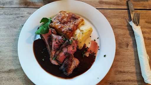 Absolutely amazing service, we phoned to book a table only a few hours before dinner service began and was very easily accommodated. When we arrived it was very quiet, I almost felt bad about bringing our two children especially as there were signs everywhere saying no children at the bar... However when we sat at our table the server brought out a game of noughts and crosses for the children to play and got our order in. I asked to bring the childrens' as soon as possible knowing our meals would take longer to cook and they did. That kept the kids quiet and happy and their portions were very generous! Onto our meals, I chose the duck breast with hoisin sauce and dauphinoise potatoes and wow! I was not disappointed the duck was perfectly cooked and the sauce was amazing, the dauphinoise potatoes had a delicious crispy top and soft creamy centre and it came with a separate plate of vegetables which were also cooked to perfection. My partner chose the stilton burger and he could not complain either. Again the portions were very generous, we didn't even have room for dessert! All of this and we were finished and paid within the hour! Now I understand the dauphinoise and vegetables would have been precooked to get everything to us that quickly but you honestly couldn't tell and it was great for us as it meant the children didn't get bored and hungry waiting for their food for ages and it was late for our youngest so it meant we could get her back home for a decent bed time still! We came on holiday but we plan to return and will definitely be making another...