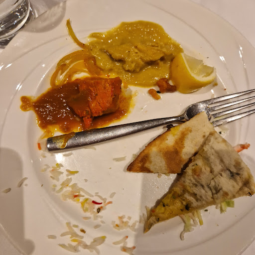 First of all, Mango chutney was good however they charged £7 for the chutneys and normally it is complementary. They came with Papadoms and were a bit oily. The Indian music could be better- more traditional , also tue music playing was only 70% indian. We were the only indians at tue resturant and the second we walked in, they changed the music from english, to indian. The Water didnt come wity ice- i think it you wanted some you would have to ask. The Hand sanitizer bottle at table was broken. It was very sticky. The Service was not fast. It was taking a lot of time. We chose the buffet for our main meal. There were limited vegetarian options and a lot of chicken options-as most of our family is vegetarian, there was only rice and 1-2 currys. The chicken(not curry) was ALRIGHT. There could be a bit more flavour but overaal a 7/10. The chicken pakora is good. Good ratio of chicken to pakora. The salad consists of shredded lettuce,carrots and slices of tomatos and cucumbers and lemons. No salt or pepper. The mixed veg curry was nice. It was the right temperature. The chicken curry on the left was okay spicy. I cannot handle spice and it was alright. The curry on the right was mid. There wasn't anything wrong with it but it didn't give that authentic indian taste.