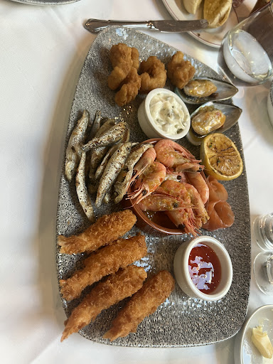 We were not disappointed, we had been greeted and brought to our seat, offered water and given plenty of time to look through the menu, we had; seafood plater to start, Main dishes; fish of the day & hake with cream sauce.