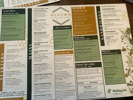 I had my birthday dinner at the Holiday Inn Meadow restaurant in Worth, Gatwick. The place looks stunning, contemporarily refurbished and busy for Tuesday evening which was reassuring. We ordered a bottle of Prosecco and olives & pizette as a starter followed by three steaks as a birthday treat - lamb ramp, ribeye and fillet. All came out looking perfect and tasted superb. The meal was accompanied by a great customer service of the team - George, Sarah, Charlotte and Yasmin - who have made a great effort in serving us and even brought me a birthday brownie surprise with a âhappy birthdayâ song! That was a lovely touch! Thank you all for your outstanding service and friendly welcoming atmosphere. We will definitely be coming back and highly recommend this place to others for dinners /...
