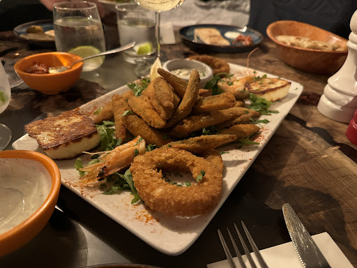 Read moreA chaotic mess! Having had our order taken by one waitress, our starters arrived. After 5-10 minutes we then had 3 different waitresses coming to the table within 60 seconds to clear our starters because "our mains are ready". This was despite us clearly still eating the starters and them being half eaten. This made us feel very rushed. We wanted to eat the food we're paying for and not have it taken away because you've messed up the timing! Once the starters were cleared we were waiting for about 10 minutes for the mains to arrive...? Most of the meals were fine however one of our party ordered the grilled octopus and it was inedible. It was like a piece of tough rubber and it was not even possible to cut it. Having informed one of the waitresses to this, the solution to this was for the 4th waitress of the evening to bring a steak knife! Unbelievable! Having finally been informed of what was going on the manager came over to apologise and ask if there was something else we wanted, but we declined. The octopus was removed from the bill with a small discount and a free desert was sent to our table. This gesture made me give 2 stars instead of 1. What a mess and chaotic operation that is being run. I felt that if we had one dedicated waitress then most of our experience would have...