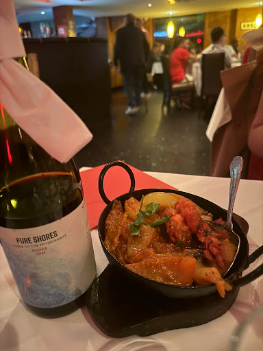 The food was fine but unremarkable. I had a naga madras from the specials and whilst it had a really nice heat to it the underlying flavours weren't particularly exciting. I had mushroom rice and poppadoms to accompany and the portion size was good. Service was quick and fine. For two curries, two rice, poppadoms, a beer and a non-alcoholic beer the bill was a little over £50 which is fair. I added 10% service charge. The most the waiter spoke to me during the visit was when the topic of adding a tip was brought up which I found quite funny. When we left it felt like a warmer departure than the welcome.