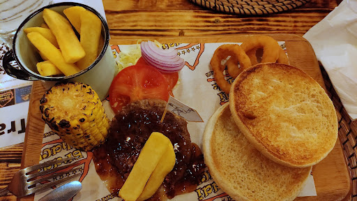 The bobotie was excellent. Really tasty and well cooked. The disassembled burger was very well presented too and cooked exceptionally. My (hopefully) constructive criticism starts here. The burger comes with cheese which was not mentioned on the menu. The waitress did however mention it when we were ordering (well done) so I was able to leave it off but it should be clearly disclosed. I was not given a choice in sauce. Both meals only came with the "secret" sauce which to my taste was a thinner version of Mrs. Balls Peach Chutney. Now, I would have preferred a Monkey Gland sauce which I highly recommend BS offers as that is truly South African. The other issue I had was that the burger was so perfectly done but was smothered in the sauce. Your chef is very talented and I wanted to be able to taste the mastery he had presented. Perhaps consider bringing the sauce separately in a little jug. On that note, I asked if they had a sauce with a bit of chilli. What they brought was perfection. I am not a fan of tabasco as it is a little tame but what I got was sublime. Just the right amount of heat that you know it is chilli without being full on Carolina Reaper material. Kudos.