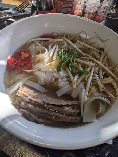 Read moreThe only Vietnamese thing about this place is the name. We booked to celebrate our 30 year wedding anniversary. I should have known it wasn't going to be good because there wee only 3 tables occupied. The wait staff were friendly and efficient. However, the menu and prices do not reflect what comes out of the kitchen. I had the bone marrow starter. The best thing on that plate were the 2 fried prawns. The Caviar was there but I couldn't find the taste. The marrow needed seasoning. Prawn crackers might seem like a good idea to bring in some "pan-asian" flair but it doesn't really work. Fat on top of a deep fried cracker... I ordered the rice plate with garlic prawns that comes with pickles and nuoc cham. What arrived was a plate of fried rice and 7 uncleaned prawns for £19. I asked about the pickles and was told "we aren't doing that right now" so I figured the nuoc cham was not coming either. By the time the "senior" server came over my husband was half finished with his meal. She did ask if I wanted something else, but I didn't fancy eating while my husband watched because he would have finished his meal before mine would have arrived. This ruined the evening. I would not go back to that place. There was no manager to speak to. The waitress was lovely and apologised, however, I should have been informed that the dish was going to be replaced with fried rice. Had I know, I would have ordered something else. I see from these reviews, someone else noticed the dish was not as advertised so it wasn't just a one...