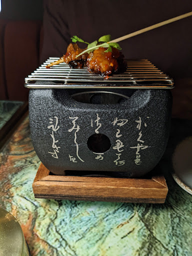 The restaurant itself is a little on the dark side but has a stylish décor. Different light fixtures above every table, very comfortable, thick quilt padded chairs and a textured wall with Kobe lite up in tubular lighting. The bar runs down the left side (as you enter) of the restaurant and is nicely positioned with bar stools should you just fancy a drink (good selection of cocktails).