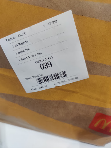 Well on my first visit yesterday morning was eventful. I ordered my family's brkfast 1 dbl sausage and egg mcmufin meal orange juice. 1 dbl sausage and egg no cheese mc muffin meal hot choc. 1 dbl sausage muffin no egg no cheese as grandson has allergies and fruit shoot. And was ordered to first window and my food was read back to me as above but with a bacon breakfast meal instead of my grandsons meal,so had to go through it again at first window holding up the question,paid and then went to 2nd window where I was given my drinks and the lad ask who I didn't see shall I park this one up he didn't get a reply and he asked again and still he got no reply and I just sat waiting so once food was received went home on giving out the three meals I found another dbl sausage and egg no cheese muffin what I hadn't ordered but checked my receipt ide been charged for it so that was that.