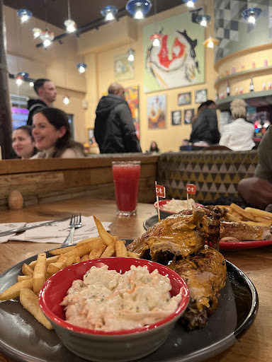 Read moreSo...let's begin. Disgusting corporation with no respect for customers. We placed an order online for collection. Wings and chips. Nothing special. 30 minutes for prep. Ok. We go there and wait another 30 minutes. I ended up approaching an employee to find out what is happening because it didn't look busy at all. What was going on? Well... 3 young lads in the kitchen doing nothing. NOTHING! Going to the till and back to the grill with a piece of tongs in their hand. I watched them for the whole time being there. The whole 30 minutes! They behaved like their nanny punished them to be there. Hey Nando's, train your staff! Raise their hourly pay or send them home and get some decent workforce. I have been in the food industry for over 7 years now and I had never seen someone so disengaged and lethargic like them 3 fellas. Now I feel bad for not taking their names to let the world know who to call in case someone needs nobody to do nothing for them. Shout-out to the manager who was trying to step up and get things done. By herself. Food was decent. But then again...it was some wings. Pre-marinated and cooked on a child-safe grill. If you know how to breathe, you know how to cook it. See you next year Nando's! (Yeah...those wings taste like...Nando's. I'll still have some every...