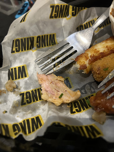 Was forced to go to Wing Kingz after my first bad delivery experince due to needing a snack while waiting for an escape room. And boy was I disappointed. First of all, there were lots of empty tables and the waiter said wait a minute I’ll get you seated. We’re watching him for a good ten minutes running about the place doing other things while there’s lots of waiters standing idle.