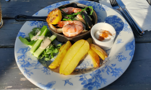 The other points are kind of excusable and maybe even petty to moan about but the one thing you expect to be good, would be the food right? The starter we ordered (the sharer platter) missed the mark on what was described versus what arrived. Not the end of the world as it was actually the best thing that came out and from what we heard was maybe the best plate in our area, I'll come to that in a second. Our mains however, were just very.... SAD. "Glazed seasonal veg, honey roasted carrots", I wish this was the case, unfortunately it looked like the chef has given up and emptied a pre prepared bag of veg. The lamb was bland and dry (thank goodness for mint sauce). My other half ordered a steak with surf and turf, somehow though the "surf" part of the food was so overcooked that is was solid. Not even any seasoning on them to add insult to injury.