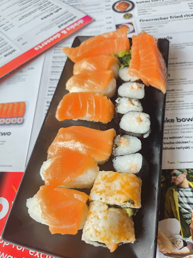 Haven't been in Yo Sushi for over 3 years. Popped in with my family for dinner and was so disappointed. The atmosphere was super flat, the welcome as we walked in was non existent and the service matched the flat atmosphere. I asked if my 5 year old could bring in a happyeal as he doesn't eat Sushi, to which the server said no because there was a risk of cross contamination woth the food, but there is no food going round on the belts??? What the hell was going to get contaminated??? So anyway we still decided to eat and try and give my son some Kathy chicken amd rice. You have to order everything through an app. I spent over £100 on food and was massively disappointed. Spicey seafood upon was lacking flavour, tasted like it was watered down. You have to order your wasabi and ginger ( no longer on the table for you) which you get a tiny little plate of (barely enough to for 1 person). All the plates and lids for the food were greasy and oily when they came. It was as if none of them had been cleaned since the last use. No check backs on us, no offer of up on our green tea, no one available to ask for any more ginger and wasabi. The team looked so miserable. The whole experience was just awful. Would not recommend this place at all. What a waste of money. Yo Sushi, you really have fallen in terms of service and standards. From what used to be an amazing experience and dinning atmosphere, you have literally turned yourself into a tepid canteen. Service in my local cafe is head and shoulders above what you've turned into. Maybe it was just this branch, but to be honest the poor experience I've had doesn't make me want to even try another branch to compare it to. What a shame that this is what you've turned into. Bring back food on the belt, turn up the music and get your team to even try and at least be a tiny bit...