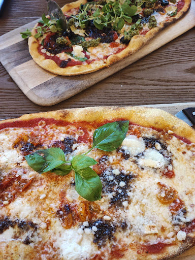 The sticky pig pizza was very nice, however tomato based size needed more cheese as did my wifes Rustica Meat Sofia pizza. Both pizzas could have done with more sauce too.