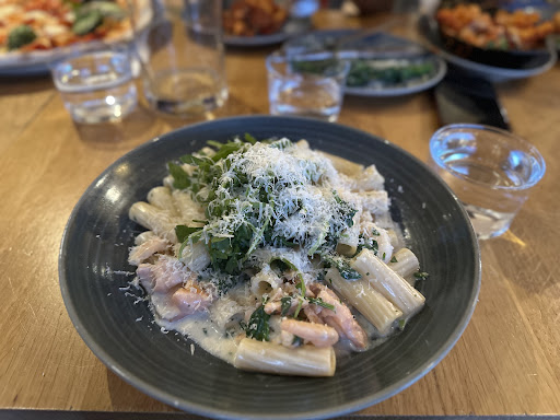 Read moreService was great! Drinks were lovely. Friend and I shared the Crispy Fried Mozzarella and the Garlic Bread with Balsamic Onions & Mozzarella. Mozzarella was ok but the garlic bread was so good. Both large enough portions to share. For my main I had the Chicken, Prosciutto & Sage Saltimbocca. Unfortunately, this was awful. It was like something you'd eat on a restricted diet in the hospital. Very plain and little to no taste. Two friends at my table said they tried the dish before. One described the sauce as "dirty dish water" This was quite accurate. I finished with the Tiramisu which was absolutely amazing. Again, shareable but so good I didn't! I was with a large table, a variety of dishes were served - burgers, pasta, fish, calzone, and pizza. Overall everyone seemed quite pleased. Again, service was excellent and I'll be back to try...