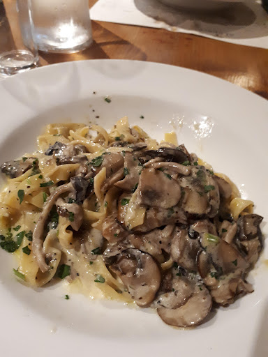 my wife for mains had carbonara which was ok however was made with pure butter! And was so rich she couldn’t finish it due to the amount of butter it was made with and not egg yokes as it should be and she loves carbonara however it was swimming butter and even though small portion she couldn’t finish it. My pizza was under cooked, the onions were barely cooked and the “chicken” was cubed, tasteless and the cheapest chicken I’ve ever seen, we feel gutted as we travelled quite far to come here and we were in and out within 25 minutes as we were made to feel very uncomfortable! If it hadn’t of been my wife birthday I would have made more of a effort to be heard as I was extremely disappointed due to this being my wife’s birthday meal however we just wanted to leave immediately and put this down to a lesson learned. NOT to come here again. Give this place a miss guys I’m afraid and save your money. I’m a 20 stone ex squaddy and I’ll eat anything but this was shocking and for me to not enjoy a pizza…..that is saying something!...
