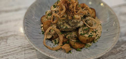 The interior, set in an old railway siding, is both beautiful and unique. The décor is superb, featuring original artwork and a wonderful ambiance that immediately makes you feel at home. The service is impeccable, with attentive staff who genuinely care about your dining experience.