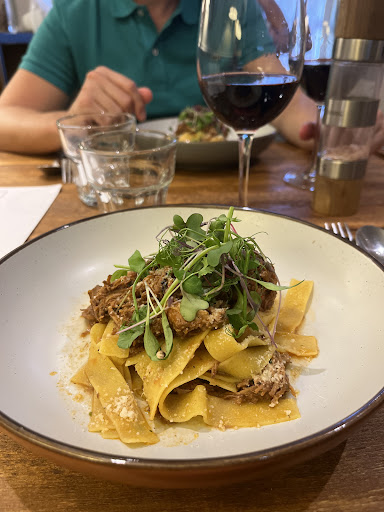 Insignificant from the outside, but step inside and you will be treated to a taste of Italy! You know from the moment you walk through the door, that this will be a good experience! Clean, authentic, genuine Italian business with Artisan food and wines to showcase Italy’s beautiful produce. Having not eaten there before, I opted for the dish of the day which was a safe bet. A beautiful pear and pecorino ravioli. A simple, humble dish, what could go wrong? Well, absolutely nothing! In fact, all my expectations were exceeded and left me yearning for a next visit. Super little place, great atmosphere, really good food and lots of goodies to treat yourself to enjoy at home. Melt in the mouth pasta, bursting with flavour. Simple ingredients where the produce is respected and the food speaks for itself. Great for lunch, I am sure dinner is just as good and with some great quality wines, specialist collections, you can’t go...