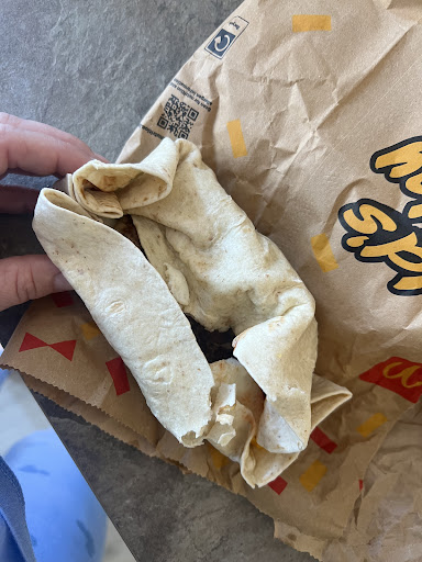 Read morePlace was absolutely filthy inside, bins were over flowing, tables and floors were covered in rubbish, the sauce dispenser was covered in bbq sauce and ketchup,If it was busy in there I could understand but it was dead. All the staff sounded to be larking around in the kitchen area out of site. They had a box of chips on the floor with a bag of open chips on top that they then placed the chip basket on the box to fill it up with the chips ( which is probably why the staff were sliding about all over the floor. Not forgetting the lad that used the chip scoop to flick the fries that had fallen out of the chip sleeves back into the chip scuttle to serve again (baring in mind they hadn't served any chips in the 10 minutes I'd been waiting). Add to that the nice spray bottle of raid on the counter. Next comes the food. As always its cheap and cheerful after a 10 hour shift, but christ can the staff even read, if I order a grilled chicken wrap, and you print the label saying grilled chicken the screen says grilled chicken wrap yet they cook me fried chicken I tend to think the staff need to return to school, and where was my cucumber?? Side salad no cucumber, and wrap no cucumber. Then comes the big mac that was made with so much love the burger was folded in half and there was more filling in the box than in the burger. And why is the odour coming through the staff door like pure human poo??