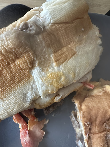 But, still no cheese visible. Definitely not double cheese. You'd expect to be able to identify it when rolling out the entire sandwich flat, but mo. None to be seen.