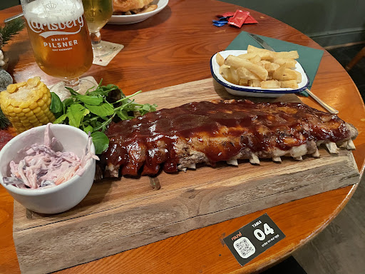 Onto the food... Just to start, the waitress kinda laughed when I ordered all our food... And it was a challenge to finish the massive portions hahaha but it was heaven in every mouth full from start to finish. Halloumi fried and squid rings to start, soft, tender, crispy on the outside and piping hot in the middle. Absolute magic! We were recommended to go for the Rubs by a lovely local and his pup Luna, my word, was thw size of half a pig, succulent smokey, loads of bbq sauce. Just wonderful! And real challenge to finish but we battled through!