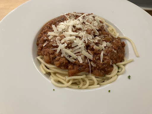 We both had the lamb and beef ragu bolognese from the specials board - delicious sauce and British meat, spaghetti cooked from fresh as well. Sticky toffee pudding, although tasty, was most likely microwaved. The waitresses were friendly; young waitress, Sue, was very good as the kitchen had forgotten our order so she quickly sorted it. A bit too expensive for me though, £4.50 I was charged for some lettuce. Overall, great atmosphere and food but service was slow and lacking slightly.