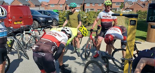 Read moreFairly new cafe situated on the edge of town. Large gravel car park for vehicles but the cafe seems aimed at the cycling community. Plenty of bike storage, a large tool station, work stand and track pump which we put to use,there is even a water dispenser for bottles in the work area. Fixed tables and benches together with loose tables and chairs are outside together with a large seating area inside. We appear to have arrived at the tail end of a rush,even so we didn't wait long. Delicious food was delivered quickly by very polite staff, we had vegetarian and gluten free members and these were catered for. Everything is on one level so access is easy...