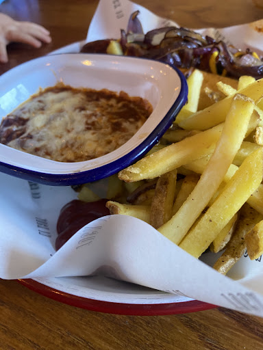Food was actually very good and my fish pie was excellent with plenty of fish and piping hot. Chips could be better as they were a bit bland I prefer the wetherspoons ones.