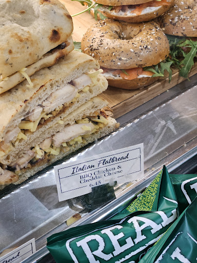 I visited this place at lunchtime and found it was lovely and bright with friendly staff. There was a small queue with people safely spaced out ( Covid provision). The food on sale looked appetising . I bought a ham and cheese croissant, a millionaires slice and a bottled soft drink. I was pleasantly surprised at the quality of the ham used. The croissant was light and fresh. The miliionaires shortbread was delicious too. Due to current circumstances I couldn't sit inside the cafe, but I have been prior to Covid and recall there was always a good atmosphere and staff were helpful and polite. As a takeaway they offer baguettes, toasties, croissants, delicious muffins, cookies and cakes . Cold drinks are in a refrigerator and they also sell excellent coffee. Definitely worth a visit if you are...