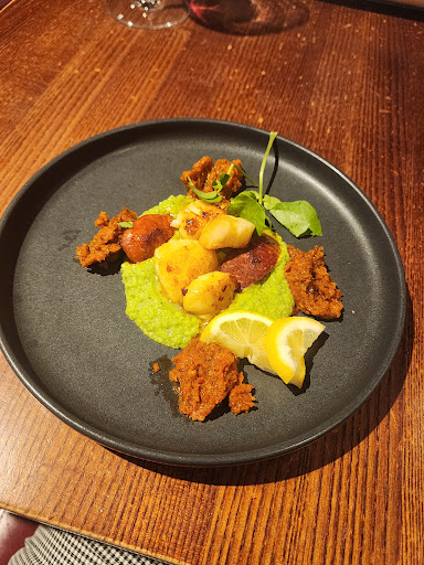 The starters the 2 orders of hot honey chicken wings were both missing the hot honey and the scallops & pork belly was laughable 2 scallops was fair for the price but the 2 thin slices of pork belly wasn't even close with my friend who ordered it joking "where's my starter".