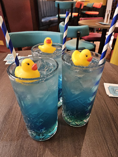 Went on Saturday (6th of Sep) with some friends (6 of us). The queue to get in was quick and the gentleman at the front desk was welcoming and friendly. Wish we could have gotten his name to put it here ! He had blonde longish hair that was a mix between a mullet and wolf cut. Then we decided to start on games as the queue for drinks was quite long and on the slower side but staff is still training and even though there was pressure and many ingredients for drinks they were all lovely! (the best drink is the one with the little duck it packs a punch) We got started on games but were a bit unsure about the process of stamp collection but Katie helped us out and answered our questions. We also made our way over to a game where you have long stick and need to collect duck on hooks with it (not sure what the name was). There we were helped by Lily! I was so surprised that it was their trial shift as they seemed confident in answering our questions. They had effortless banter and really cool pink hair! Overall each staff member were helpful and very kind. With this we did unfortunately encounter a few disappointments during our visit that I think could easily be fixed by management such as the prices of drinks (a student night with cheaper prices three times a month would I think really bring in a good crowed), lack of direction when it comes to games/ rules for stamp collection (signs saying how the score cards and point collection work would be beneficial especially since it can get quite loud), too high of a score to even collect stamps on your score card (20 ducks in a bucket with a short timer is and was unrealistic I think that the number should not be set by who got a high score and should instead be set by a median as it makes it more fun especially for the harder games but games that are easier should be based on a high score), only two places that are real designated photo locations (make it like Disney land and have a photographer come around to take pics that can be purchased at the end of the night instead of one photobooth and a single horse from a carousel...), too many booths and not enough space where the games are (this meant balls were flying everywhere and the seating area was dead space. People were being hit by basketballs, expensive drinks were being knocked over and I accidentally hit Lily with the wooden pole due to the lack of space. We came to play games so there's not really any need for that much seating and its the selling point, the food is a second thought - also make it like a walk up and order food situation if you want it because that screams carnival or a fair!), there were too many glass cups that could break (sippy cups that look like ducks in the game area would be so cute!!), and finally many of the games weren't fully functioning which is disappointing as its not been open that long. A big positive note the staff was extremely attentive especially when my group said that the music was too loud to even hear them explain the games and if they could turn it down which they did right away! I think it is a fun experience and we all had a good time but unfortunately we aren't keen to return as we spent most of our time waiting be it for games or drinks (almost ÂŁ14 for a double vodka and coke - Bally's the casino next to it for example is about ÂŁ9 for the same drink) which ultimately made the experience a bit boring, the complete opposite of what a carnival or fair should be. I hope that some of the disappointments my group had are smoothed out and that some of the solutions are taken into consideration. There is a lot of potential and I hope I can see if I can convince my group (with some tweaks here and there from management - the general staff killed it our qualms are with the music not the instruments)...