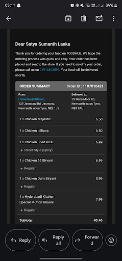 Read moreI have made an order for chicken 65,dum and Mutton biryani with chicken fried rice and chicken majestic and lollipop around 4pm. They said biryani and lollipop isn't available, they said if i can wait until 6pm. I have to go to work by 6.30pm so i have replaced biryanis with 1 more chicken fried rice, noodles, chicken manchurian and prawn 65 matching the price. They mentioned that they'll be able to deliver by 5.10pm but they haven't so I've made a call they said the food was readyvand waiting for driver and the next minute they called back and said that prawn wasn't available as they didn't bring the stock that day I was so furious it was already 5.30pm. They said they'll give chicken 65 with some extra pices coz the price of prawn 65 is higher. Finally i got my order at 5.55pm i was late for work and in my break while eating majestic there was a small stone and there was one more in manchuria, i had requested them in call as well as in instructions to have fried rice spicy but it wasn't and there should be two fried rice and one noodles instead i got 2 noodles and one fried rice. The taste was awful the only thing that was good is chicken majestic but i had to throw it away since there...