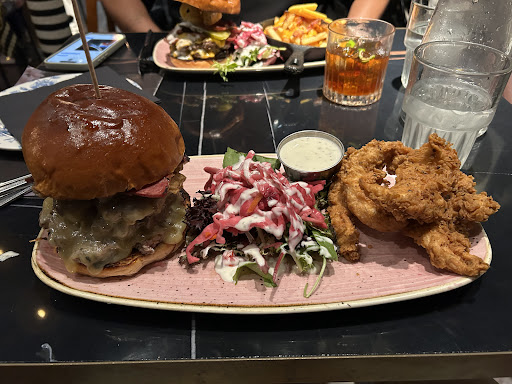 Fully worthy of award winning burgers. I had the 'California' and it delicious. Really tasty patties and a lovely soft bun. The red onion jam was sweet and paired beautifully with the salt beef. I'd have liked a little more of the salt beef meat though. The sweet potato fries were great and my girlfriend enjoyed her chicken tenders. Pretty good portion sizes. The place has a nice atmosphere, a fantastic bar selection and the staff were top notch. Definitely somewhere I'll go again soon!