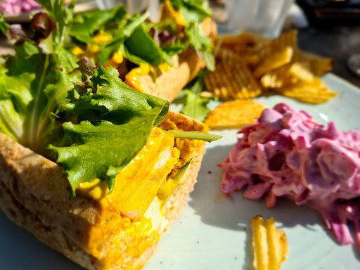 Paninis were okay, we just felt they could have been better with some minor tweaks. My beef, blue cheese and caramelised onion chutney was heavy on the chutney, and therefore too sweet, and also light on the blue cheese which seemed to have mainly melted away, and dribbled out judging by the tasty traces down the outside. Thinly sliced beef - flavour generally lost in the chutney. Husband's chicken, mozzarella and pesto panini felt hastily done and the mozzarella was still cold in the middle. His second half was better as the temperatures had balanced out. We thought the Biscoff tiffin (vegan) looked amazing, and it was very well presented. Biscoff flavour overpowered by the soft, dark chocolate flavoured layer on the top which was very sweet and rich - neither of us could manage a whole one. I finished my slice at home, removing the chocolate layer and enjoying the rest more as a result. Prices seemed fair and they were right that there was quite a bit of parking in Nuns St (2h limit) which is very close. If we were in the area, I'd definitely...