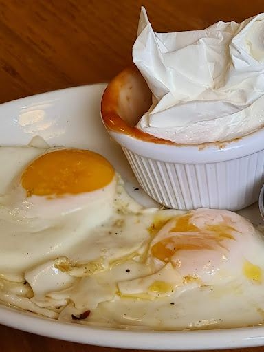 Read moreWent for breakfast on 10/11/21. Ordered and asked if I wanted to add black pudding onto breakfast for 79p, I said yes. My partner ordered a bacon sandwich. Waited around 15 min for food, it was really quiet as it was before midday. My food came out , eggs overdone the rest of my food was greasy and the sausages were warm and the bacon borderline. I asked for soft eggs as don't see the point in having toast without a dippy yoke. The server left me with the breakfast and went to get 2 eggs, they came in a few minutes on a plate that was swimming in grease. The server did not return and I had an issue with the black pudding as it looked undercooked and was jelly like as you can see in the photo. The beans came in a tiny ramekin and the tomato was not cooked , it was like a raw tomato. The last time I had a breakfast it was really greasy too. I had no check back and we left feeling disappointed as my partners sandwich was overdone too. I just won't go back for...