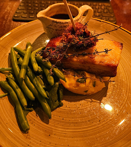 I was served by Kerry(?). Pleasant person and good customer skills (the other staff I spoke to where also nice.) Danni(?) Was my chef. Very nice food I had the Tandoori chicken skewer for a starter. Small portion but I might just be a glutton. Pork belly was very nice (I usually have this Chinese style with a big fat crispy cap on it) this was the fist time I had pork belly this style and it was slow cooked, soft and tender. Very nice. Mash was nice. Couldve done with more gravy but I am from Lancashire and I like to have plenty of gravy. Overall, would recommend. No faults. This is my second time visiting and I will be back when I'm next in Gosforth, I specifically book the travelodge to come back to this place, I much prefer premier inn. I hope this review reaches management and gives you a little chuckle. Here's a joke for you: What do you call a well-balanced horse? Stable.