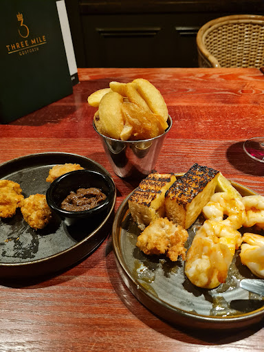 Read moreAte twice at Three Mile while on a visit to the UK & a 5-night stay at The Great North Hotel (on premises). Visit 1, party of 6 - Tuesday Jul 25: Tandoori Chicken Flatbread was FANTASTIC; steak was tough & rubbery; Kerala Coconut Curry w/ cauliflower + added chicken + rice was excellent. Visit 2, party of 4 - Fri Jul 28: unfortunately, we waited the better part of an hour for our food. Not enough servers, and it was extremely noisy (busy celebratory evening). Manager came out to discuss and offered a free round of drinks along w/ heartfelt apologies - absolutely lovely manager. I apologize, but I did not get her name. Curried cauliflower was missing mango sauce, fries & the salad greens I had requested - all which the manager immediately brought out. Again, the Tandoori Chicken Flatbread was OUTSTANDING, w/ a very generous portion. It was like a huge pizza with very imaginative toppings. Highly recommend this restaurant. Would like to reiterate that the manager was truly great and is an asset to your establishment. With appreciation, from...
