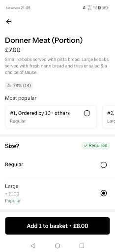 Read moremy partner ordred the large mixed kebab with salad an extra 2 tubs of garlic and a side portion of chips when the order arrived it came in a small tiny carton with no more than 6 strands of kebab 3 bits of chicken no salad no extra tub of garlic and the side portion of chips came in the same carton as the mixed kebab and there was no more than a handful of chips. my partner rang the shop up to compalin and ask for the right order and portion size to be sent out or for the food to be picked up and a refund the man he spoke to on the phone was very rude and impolite and was not in the slightest bothered and put the phone down twice on my partner. my partner paid £10 for the order and a further £5 pound for delivery meaning he paid £15 pound for this whole disgusting order that was an insult in a tiny carton. wud never order from this place ever ever again or even...