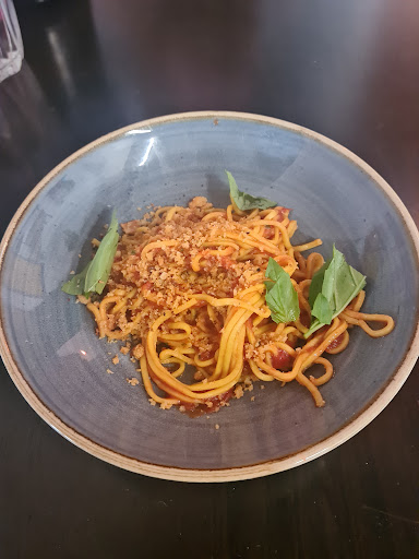 Eventually he arrives to take our order, we ordered two pastas and a garlic bread and asked if the garlic bread (advertised as a side) could arrive with the pastas (we were both on a break and didn’t have much free time). He said “it’ll arrive when its ready” and needless to say, the garlic bread arrived as a starter.