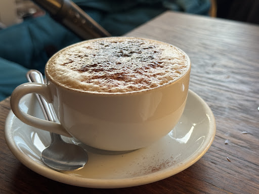 SEVERAL WEEKS AGO PART 1 Only dropped by for a coffee and a tea and the bill was just £3 odd, if you like your coffee you'll love it here. I had a big tea pot and had 3 cuppas from it. Very clean and well presented surroundings. The food menu looked scrummy so we're going back there next week for lunch. Lots of regulars as they were talking to each other which is always a good sign, one chap we were talking to said the food here is excellent. We went there about 10.15am and it was already a third full. Hope this helps, Quentin. Oh, no dogs except guide dogs..