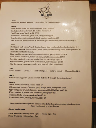 We had our best meals during a six day and night visit to Wales at The Bell Inn, a charming 17th century coaching inn serving updated versions of traditional pub food.