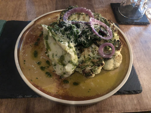 Read moreFirst time visiting and lovely atmosphere and two young girls who served us were very friendly and always asked if we needed anything . The started was a nice ,the olive oil with balsamic was lovely but rosemary was a bit over powering for my taste. Main course menu was average and not alot of vegetarian options. The pea and asparagus with brie was simply stunning.