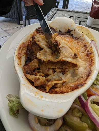 We'd ordered a kids cheese and tomato pizza, which was ok, a kids chicken nuggets, which was ok, I'd ordered a mixed grill with salt and pepper squid topping, which was borderline acceptable - steak wasn't remotely medium rare, sausages were cheap and gristly, gammon was ok, chicken was really nice, and the salt and pepper squid topping was, frankly, tiny - four small pieces for 2.99. Oh well. My wife ordered a lasagne, and this was particularly bad, it appeared to have been under a heat lamp for some time as it was dried most of the way through and very crunchy. Picture attached is of the lasagne.
