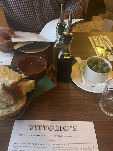 Read moreFew years ago we went to celebrate our 10th anniversary in Bath's Italian restaurant, we were very satisfied, so I thought an Italian restaurant would be perfect for my youngest daughter university graduation celebration. We live just few mins walk from Vittorio's, perfect if we'd like to have some drink, no need to drive home just walk. We've reserved our table in advance, went there on the big day, sat at table 7 of us, ordered some juice drinks, and the young men, the waiter, brought our drink HAND... not on plate, no, IN HAND.. I am not snob I swear, I am a lorry driver got used to low standard service in road side trucker service... But c'mon.. In a good looking Italian restaurant getting drink from hand? My family calmed me down, OK OK daddy, it's fine. The next move, when they brought our Alcoholic drink (do I have to say again in hand?) he said sorry we're out of stock in Martini Bianco... C'mon guys, it's not Tuesday lunch, it's Friday evening.. Didn't you know people going out to dine weekend days, Friday and Saturday? Another surprise, with my wife we ordered tequila, they bring it with NO lemon... Hhmm... Might be would be useful to learn how to serve different drinks... When we received our food, it was.. How to tell you... Expected more tasty... We're from Hungary originally, with quite spicy dishes at home, and as I know Italians also love spices... But somehow our food wasn't as we've expected. For a good portion of chicken breast I got 4 half baby potatoes as side dish... Really? 2 pc baby potato cut in half...it's a kid's size meal Obviously needed to order some extra fries. About the atmosphere.. The restaurant looks good itself, but instead of some modern dance music rather I would listen some authentic 60's 70's Italian songs.. After at all, the verdic is, likely won't...