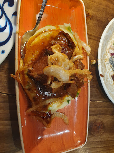 Read moreFantastic find for fresh food with great range of choice. Sat down and waiter came over and explained the menu so we had a good idea of the tapas style portions, read specials of which I and anted all of them and got us a beer quickly. Had prawns, tasted great, wings, really nice crispy and well cooked. Potatoes bravas and beef brisket. The four portions were perfect for two of us and left very happy. Everything came out bit by bit, and normally this would piss me off, but it was perfect, we both picked at what was there and the rest kept arriving hot and was all really tasty. Place was getting busy as we left, and service looked to be getting stretched as it was early for a rush. Our service and all round experience was fantastic. Great way to spend under £40 and come out with a smiles...