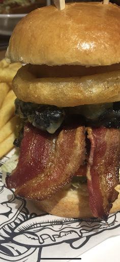 Read moreFirst visit to Bull & Bear after a very long day at local market trading all day so needed a meal. Parking may be an issue so look to park if you’re going by car around the corner by the church hall. But of a faff to get there but worth it. Arrival greeting was cheery and nice and shown to a table for two which sort of stuck out a bit next to the way in and bar area. Strangely no paper menus and they rely on you being suitably literate and have a smartphone to know what to do scanning a QR code on a table mounted menu card to choose your desired eats. Not intuitive but does the job if you’re into tech. As usual drinks are prioritised at the start but with no real ale was a disappointment. 3 lagers and some fruit ciders on tap and strangely 2 Guinness bar heads being told Guinness would be in a can … no thanks. ! Settled for a chilled Peroni and a rose spritzer for the missus Burgers are clearly made either in house or locally with plenty of flavour. Served in a bun, with onions and cheese for my selection with a couple of damp limp with cheese “Nachos” which in a burger bun were neither nice nor crisp. Regular fries were already salted or slightly spiced with a nice crispness to the outside and hot Condiments were provided and were clean and well presented. Salt and pepper in old bottles was a little “different” though. A larger party taking over front of house in a separate room were a bit noisy but they were having a good time. Overall it beats a Burger King and by a country mile any Mc Donald’s rubbish. In this day and age I’d have expected chips included at the prices but it wasn’t the end...