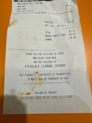 Read moreI just wanted a little cheeseburger and normally go to the M place but as I was on Severn Bretheren, I thought I'd try Burger King. The restaurant was spotlessly clean, the staff attentive and helpful. The girl said they are only sell cheeseburgers with the children's meal deal. (Maybe they need to keep up with their competitors). I explained this was more than I wanted to eat, and more money than I wanted to spend. She then offered me a double burger with melted cheese sauce. I said yes, I'd try one of them which turned out to be a double paté with delicious, melted cheese which came with delicious, hot, Crunchy, chops with free sauce and only £2.99. (Much better than the other place) Bargain. Defo recommend and I will be back. Thank you...