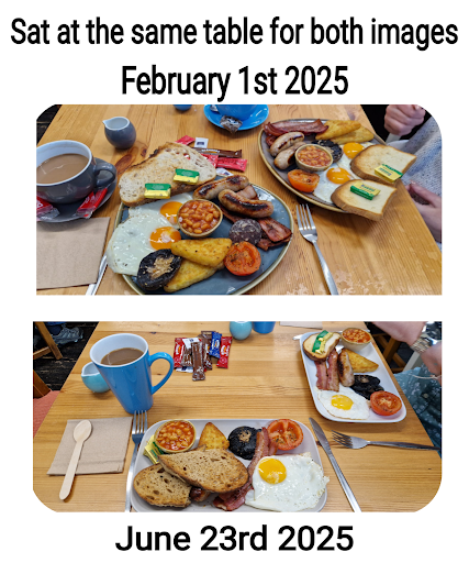 Whilst we fully understand the points put forward by the owner of the Station Master CafĂ© in reference to the cost of running the cafĂ© itself. They should also understand that the cost of living has risen for everyone and therefore he may also âwish to take account of thisâ before adjusting his menu such as halving the number items of the breakfast whilst keeping the price inflatedâŠ.I believe the term for this is âShrinkflationâ. As for gluten-free food being more expensive, yes, I was already aware of this. However, seeing as everything on my plate except the black pudding and bread was also gluten-free it might be better to do away with the black pudding and just have one breakfast for both. The saving on the pudding would likely offset the cost of the one small piece of...