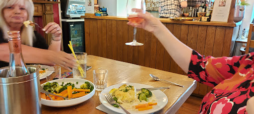 Two of us had the Steak and Ale Pie, which came with chips and vegetables, which were plentiful, one of us had the fish pie, one had Quiche and one had Stilton and brocoli soup and sourdough. Clean plates all round. Homemade cake and cheesecake followed; again, excellent. The service was excellent and friendly throughout.