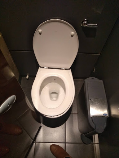 So let's talk about the toilets. First off they're not easy to find and I didn't see any signs for navigation. Yes the doors make little sense being pulls and being so heavy and loud but more than anything I am baffled at who designed the cubicles. There is no room (unless you like squishing your legs up again the sanitary waste collection bin) to get in because the door comes in too far. So that was fun... Then I went to wash my hands and a basin had a cute paper note by it saying please do not use. Don't worry there were two sinks! And thankfully two cubicles as before I found my chosen throne I entered the cubicle furthest from the door to find sick trailing down the pan. So all in all a fun visit to the bathroom and a bit disconcerting regarding the food however here we are a day on and no bad stomach.