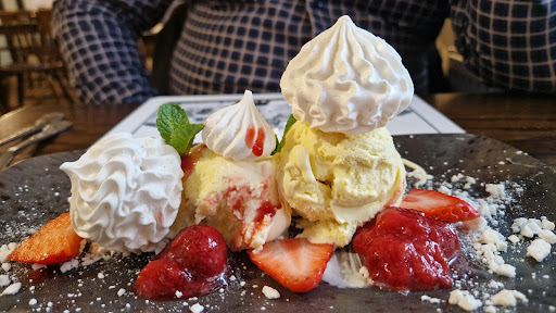 Read moreRecommended the Black Venus by neighbours. Easy parking opposite although, due to the weather, very muddy. Acknowledged as soon as we went in, but waited a while as the one FOH person was busy. All tables sat but a relaxed atmosphere. A very extensive menu, which made choosing a challenge. Our starters of garlic mushrooms, £8 and the prawn & trout tower, £9 were just delicious and beautifully presented. Our main courses, lamb curry, £19 and the 'Exmoor Beast' at £19.50 were equally as good. Great flavours, good portions, nice and hot. It was a pleasant change to enjoy a curry with salad instead of rice, not so filling. Finishing off with a strawberry meringue, clotted cream and ice cream at £8, it made a perfect end to a perfect lunch. A bill of £78.50 which included 3 pints of guest ale, £5 a pint, we thought, was quite reasonable. Looking at the wine list, averaging £7-8 for a glass, would bump a bill up considerably. A friendly farewell as we left. Given the time of year and miserable weather, it's an ideal place to go for great food, roaring fires and cosiness. When the tourists are a plenty, I would imagine it'd be a struggle to park and get a table, so I'd highly recommend booking ahead. Thank you Black Venus, we really enjoyed our visit...